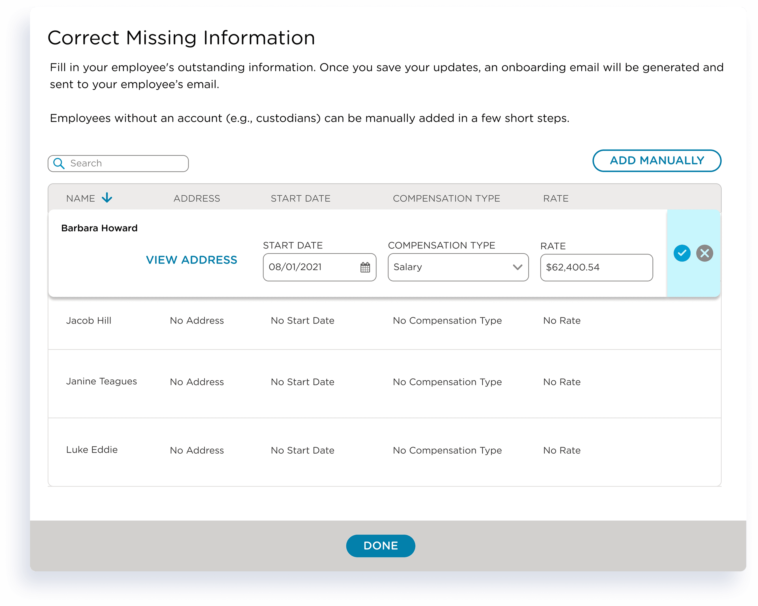 Since syncing wasn’t ready for Phase 1, I designed a modal that allowed admins to complete payroll without missing data blocking them.