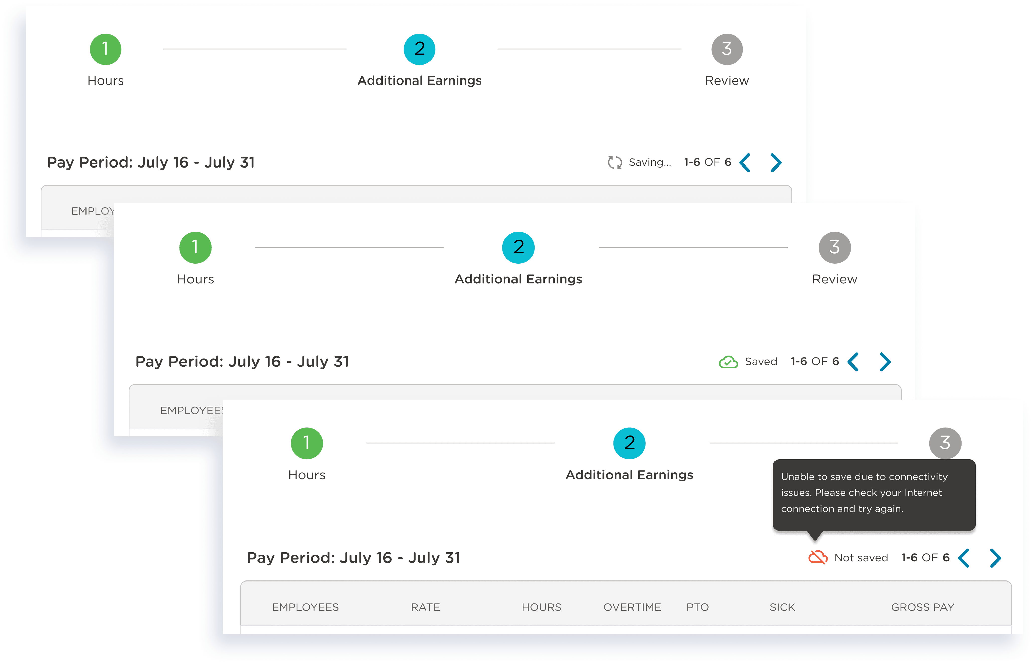 Payroll sessions can take 20–40 minutes. Losing progress was catastrophic.