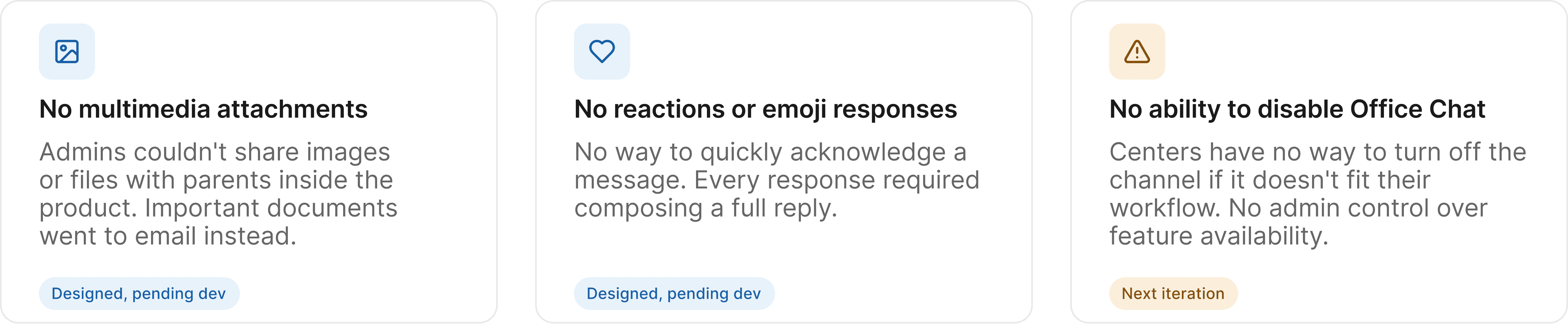 Parents were confused about who they were reaching. One communication channel for everything made interactions feel unreliable. They never knew if they were messaging the teacher or the office.